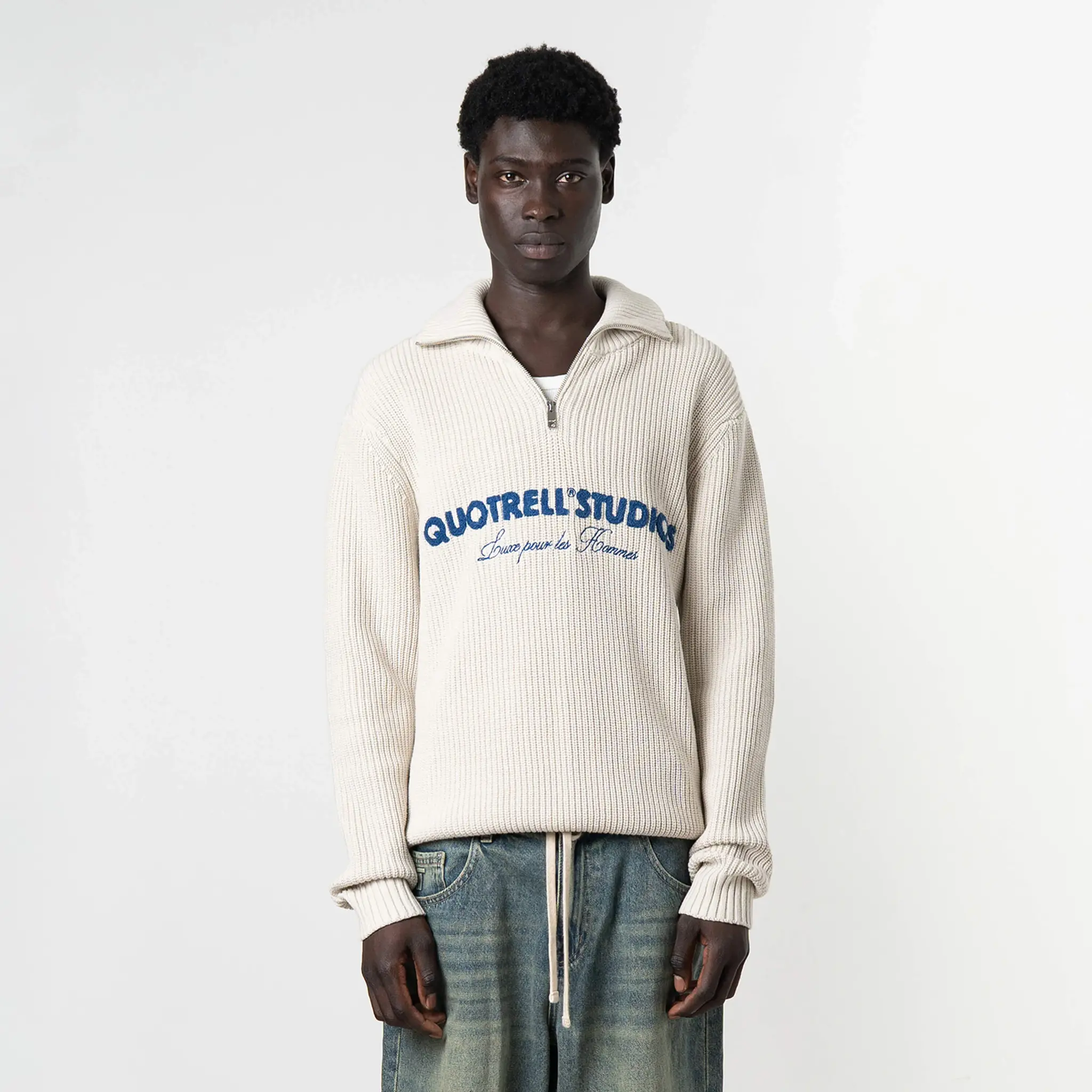 Quotrell Half Zip Jace Studio FW25 Light Grey Melee/Blu